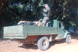 Após receber uma denúncia anônima sobre o abate de onças-pardas em uma propriedade no município de Rio Verde de Mato Grosso - MS, na região da Serra da Alegria, a PMA de São Gabriel empenhou efetivo na região para tentar localizar .