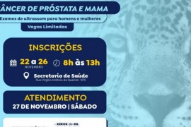 A Prefeitura de Aparecida do Taboado, através da Secretaria Municipal de Saúde, vai receber no próximo sábado, dia 27 de novembro, o Projeto Onça Pintada, com atendimentos na UBS Manoel Rodrigues da Silva, chamada de Postão.O projeto .