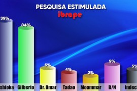 Em Nova Andradina Roberto Hashioka (PSDB), segue liderando as pesquisas de intenção de votos, segundo o levantamento do Ibrape, Hashioka tem 39%, Gilberto Garcia 34%/, Dr. Omar 6%, Tadao 4%, Moammar 2%, Brancos e Nulos 9%, Indecisos 5.