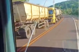 Fila gigantesca se forma se forma pouco entre a ponte sobre o Rio Paraguai ate a cidade de Corumbá, segundo informações jornalista Otavio Neto, a Policia Rodoviária Federal está restringindo o tráfego de caminhões Bi-Trem sobre a .
