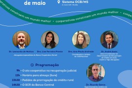 Evento em Campo Grande reúne especialistas para fortalecer a atuação jurídica das cooperativas O Sistema OCB/MS promove na próxima sexta-feira, 30 de maio, o Encontro Jurídico do Cooperativismo, no auditório da entidade (Av. .