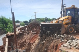 A Secretaria Municipal de Infraestrutura e Serviços Públicos (Sisep) aumentou nesta semana em que a chuva deu trégua o ritmo dos trabalhos na obra de recomposição da estrutura de concreto às margens do córrego Segredo, na Avenida .