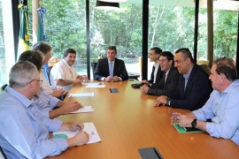 O governador Eduardo Riedel participou de uma reunião com a direção da empresa Arauco, onde foi reafirmada os compromissos com o Estado, para a construção da fábrica de celulose no município de Inocência, com investimento de R$ 25 .