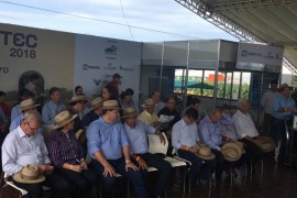 Durante a abertura da Showtec 2018, que está sendo realizada na Estação Experimentação da Fundação MS em Maracaju (MS), entre os dias 17 e 19 de janeiro, o secretário de Estado de Meio.