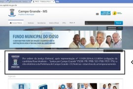O site de noticias da Prefeitura de Campo Grande, esta fora do ar temporariamente, por uma decisão da Justiça Eleitoral, a representação foi impetrada pela Coligação da Candidata Rose Modesto (PSDB.