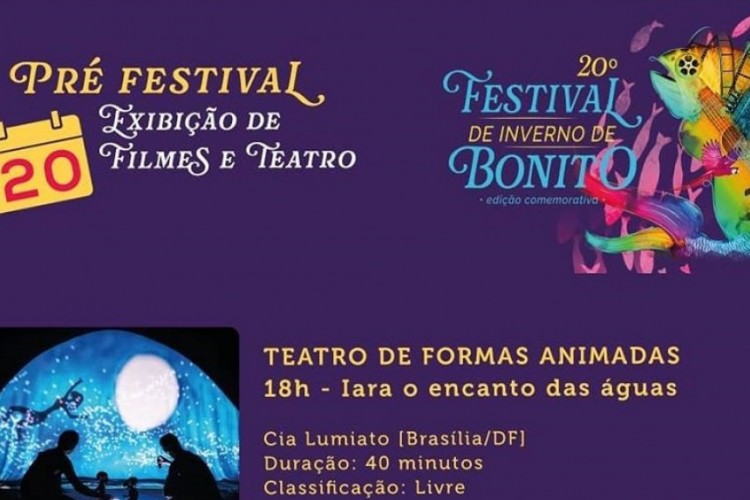 Com oficinas, teatro, contação de histórias e cinema terá prosseguimento na segunda-feira - dia 22 de julho - na área urbana - a fase pré-festival do 20º Festival de Inverno, que será iniciada neste sábado no distrito Águas do Miranda e prestigiará, no domingo (21), o assentamento Guaicurús - com extensa programação.