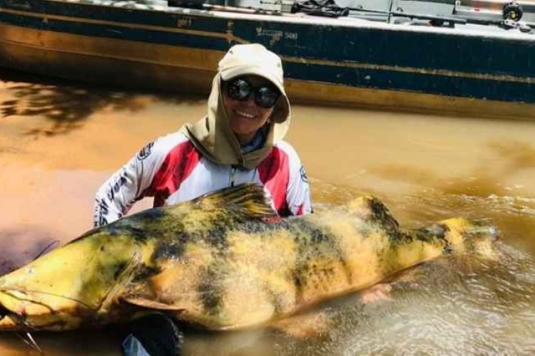 A dentista Nicele Furtado de Freitas, pescadora amadora de 37 anos, capturou durante uma pescaria no domingo (27) um jaú de 70 kg em Alcinópolis, município de MS. As informações são do site MS Todo Dia.