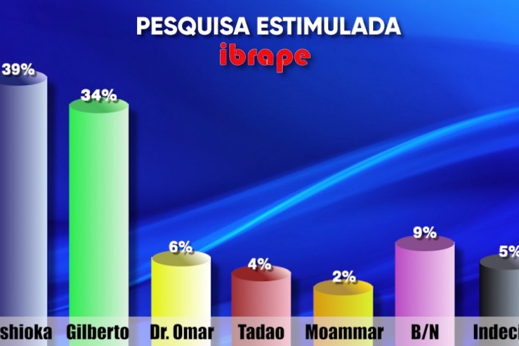 votos, segundo o levantamento do Ibrape, Hashioka tem 39%, Gilberto Garcia 34%/,