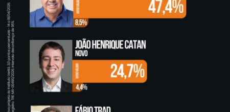Riedel na ponta, João Catan em 2º com 24% nos dois cenários, Fabio Trad lidera rejeição, segundo Instituto Veritá