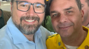 Durante coletiva com Flavio Bolsonaro, Pollon diz que não recua de candidatura ao Senador "tenho apoio do Presidente"