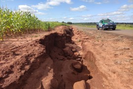 Policiais Militares Ambientais de Mundo Novo receberam denúncia, de que à margem da rodovia MS 180, no município de Iguatemi, a 15 km da cidade, havia uma erosão provocada por uma atividade agrícola na zona de domínio da rodovia. Os .