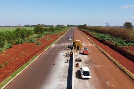 O Governo do Estado avança nas obras de duplicação da MS 156, em Dourados. A obra tem 7,3 km de extensão e liga a BR 163, no trevo do DOF, até o Distrito Industrial do Município. Ao todo, 80% das obras estão executadas. O.