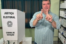 O governador Eduardo Riedel (PSDB) votou, na manhã deste domingo (26), na Escola Estadual Maestro Frederico Liebermann, no bairro Monte Castelo, em Campo Grande. Ele chegou por volta das 7h30, acompanhado da esposa, a primeira-dama M.