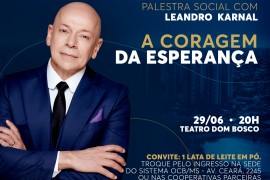 O cooperativismo em prol da comunidade apresenta a palestra social "A coragem da esperança" com Leandro Karnal no dia 29 de junho, às 20h, no Teatro Dom Bosco, localizado na Av. Mato Grosso, 225. A iniciativa, organizada pelo Sistema OCB/.