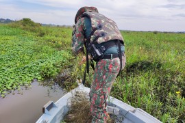 Durante fiscalização fluvial no rio Paraná, nas proximidades do Distrito de Porto Morumbi, no município de Eldorado, Policiais Militares Ambientais de Mundo Novo autuaram dois pescadores, de 20 e 47 anos, residentes em Toledo (PR) por .