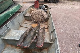 Policiais Militares Ambientais de Corumbá realizavam fiscalização no rio Paraguai, na região do Distrito de Albuquerque, nas proximidades da foz do rio Miranda, no município e prenderam dois pescadores utilizando petrecho proibido para.