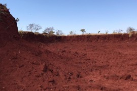 Empresários do Pólo industrial Oeste localizado no Indubrasil, reclamam de buraco de quase 3 metros de altura, e sumiço de aproximadamente 15mil metros cúbicos de Arenito, sem qualquer licença ambiental. Uma das pessoas que reclama e .
