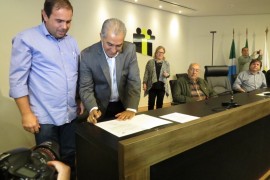 Na manhã desta quinta-feira (20), na sede da Associação dos Municípios de Mato Grosso do Sul (Assomasul), o governador do Estado Reinaldo Azambuja e o presidente da entidade, o prefeito de Bataguassu, Pedro .