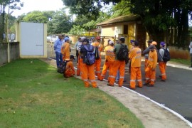 Cerca de 50 trabalhadores da Selco Engenharia fizeram um protesto hoje em frente ao escritório da empresa na rua 16, nº 291 no bairro Nova Campo Grande. A Selco é uma das empresas contratadas pela prefeitura para fazer o .