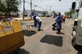 Durante retomada dos trabalhos de tapa-buracos, na rua Cel Antonino, região norte da Capital, uma condutora perdeu o pneu em um buraco bem no local do evento, pouco antes do prefeito Alcides Bernal chegar para dar inicio aos .