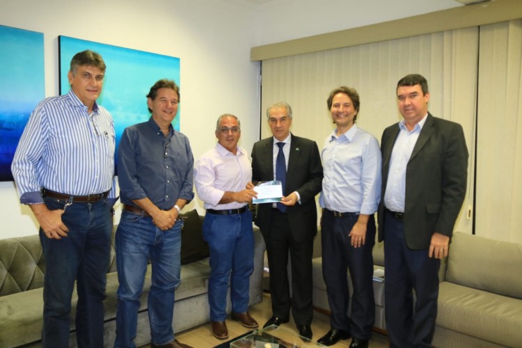 Nesta segunda-feira 25, o governador Reinaldo Azambuja, juntamente com o secretário de Governo e Gestão Estratégica, Eduardo Riedel, receberam a nova diretoria do Sindicato Rural de Campo Grande, Alessandro Oliva Coelho, e os ex-presidentes, Rui Fachini Filho e Rodolfo Vaz de Carvalho, que hoje é diretor da Fapec, Fundação de Apoio a Universidade Federal de Mato Grosso do Sul.