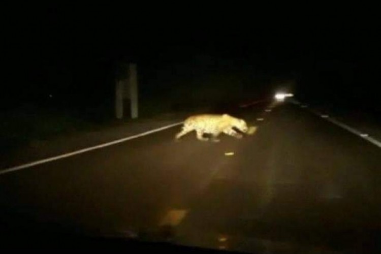 Registro feito de maneira rápida e inusitada, o trabalhador Jefferson Siqueira de Melo, de 30 anos, flagrou uma onça-pintada atravessando a BR-060, em Nioaque, município distante aproximadamente 100 quilômetros de Bonito.