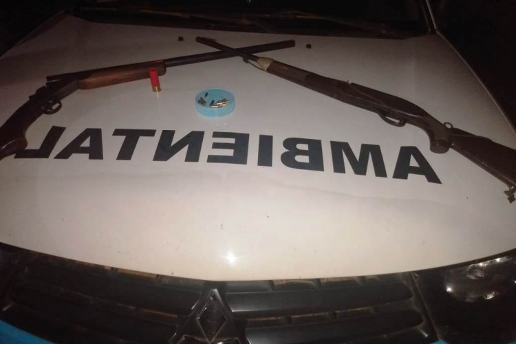 A equipe pegou as armas de fogo, sendo uma espingarda cartucheira calibre 12, com numeração raspada carregada com uma munição e um rifle calibre 22 carregado com 10 munições. Os infratores que praticavam caça na região conseguiram fugir e devido a escuridão e sujeira da placa, não houve como identificar o veículo. As armas foram apreendidas.