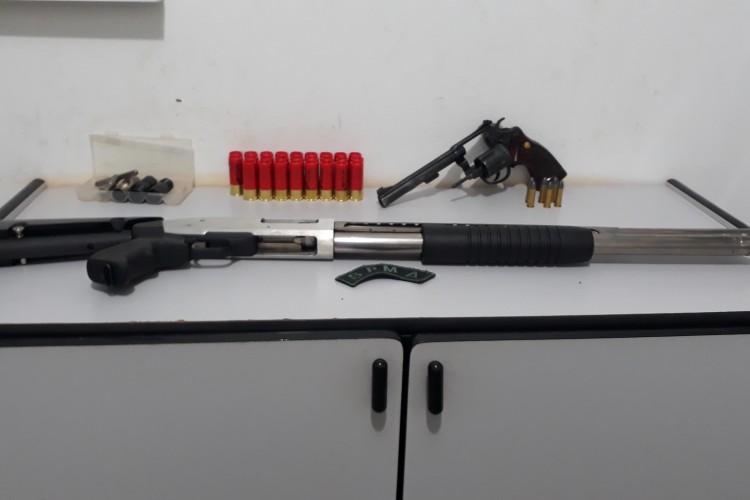 Com o controlador havia uma espingarda calibre 12, registrada em nome de outra pessoa, com 36 munições intactas, encontradas atrás do banco do veículo e um revólver calibre 38 com seis munições intactas, sem documentação, que estava no porta-luvas.