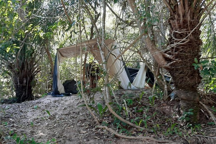 Durante fiscalização ambiental no rio Aquidauana, Policiais Militares Ambientais de Campo Grande, que trabalham na operação Corpus Christi/Big Fish III-21, localizaram ontem (3) à tarde, um acampamento de pesca, que estava sendo utilizado para pesca predatória. No acampamento à margem do rio havia barracas de lona, roupas, caixas, cinco anzóis de galho (petrechos proibidos) e não havia ninguém no momento da chegada dos Policiais. O material foi apreendido. Os Policiais calculam que os infratores tenham sido avisados via telefone da presença da fiscalização.