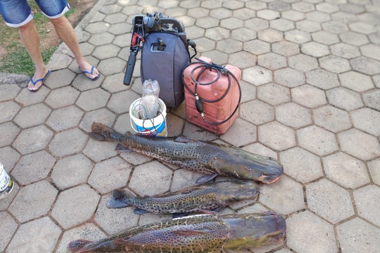 Um dos exemplares apresentava-se acima da medida permitida pela legislação (1,30 metro). Os infratores não possuíam outros petrechos para a pesca e tinham somente iscas no barco, que usavam para repor nos anzóis armados. Foram apreendidos: 38 kg de pescado, um motor de popa com tanque de combustível, um barco e foram retirados do rio e apreendidos vários anzóis de galho.