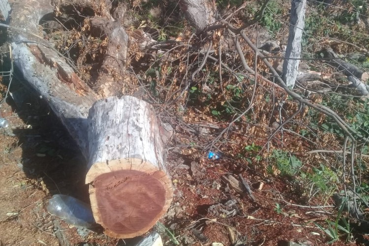 Em um lote do assentamento, os Policiais localizaram uma árvore da espécie aroeira, cuja madeira estava sendo transformada em estacas para cerca. O proprietário do lote confirmou a exploração e informou que não possuía a licença ambiental.